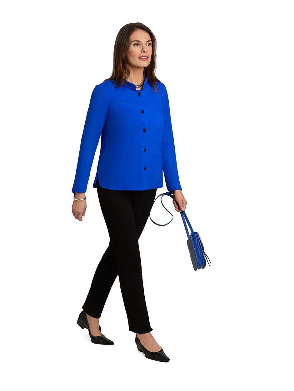Available in three captivating new colors – timeless Black, luxurious Silk Red, and bold Cobalt. Crafted with meticulous attention to detail, this tunic effortlessly combines sophistication with comfort.